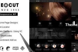 “理发店WordPress主题”。创意时尚的单页理发店模板,具有高度定制功能、视差背景、粘性...